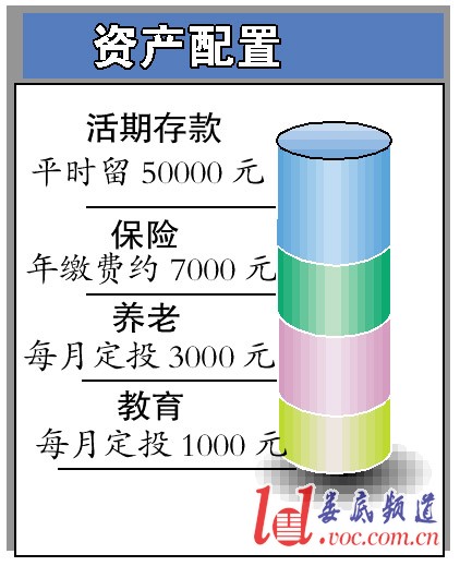 1982年出生,三口之家,女儿刚出生3个月,本人个体经商,年收入约18万~20万元;妻子同龄,在一家外企上班,工资加奖金,公积金等年总收入约8万元。支出方面,父母现在约60岁,在农村,收入暂可以自理,暂时赡养支出不大,平均每月1000元。每月家庭支出还包括:1万~1.2万元,(房贷约2500元+养车约1500元+保姆1500元+小孩费用1500元+日常支出)。