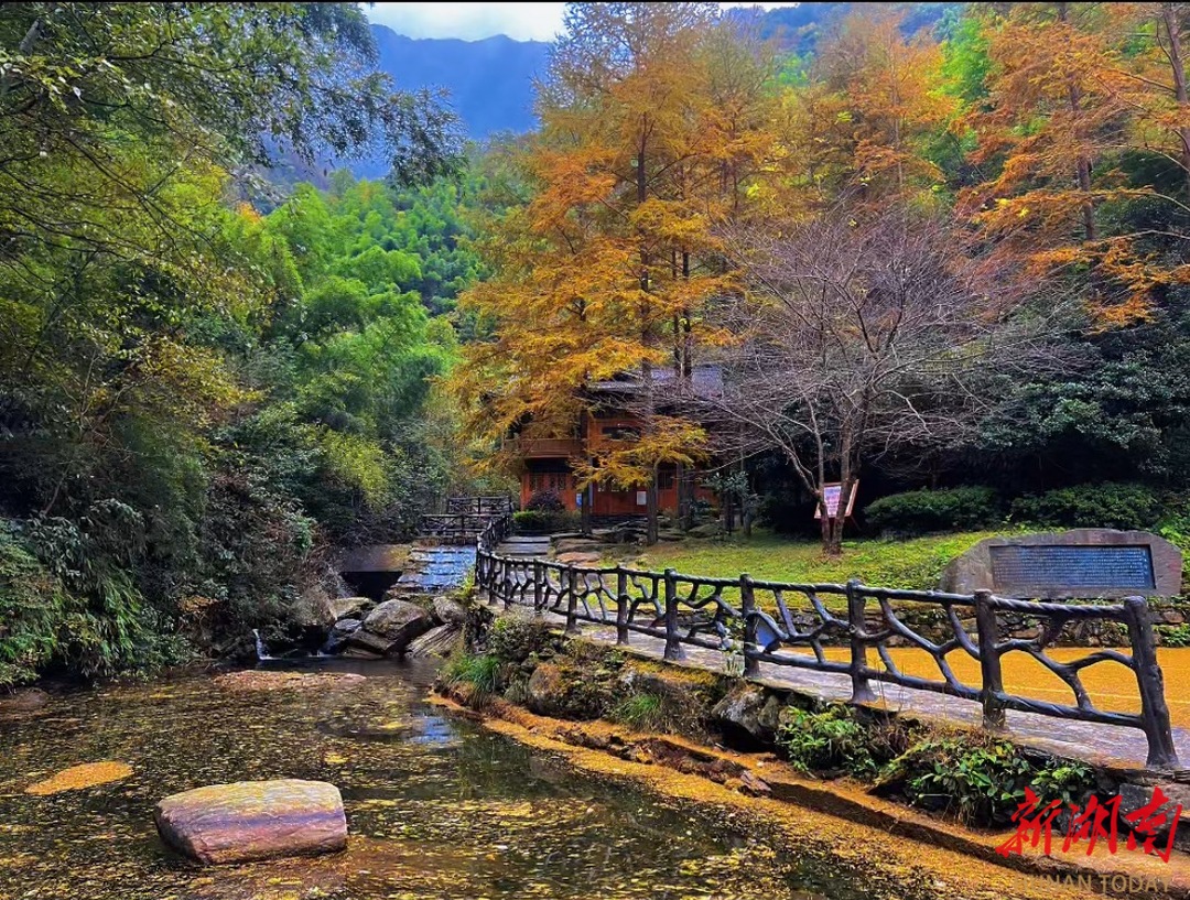 溪涧潺潺,秋意悠悠 往深处走,便能听见溪涧的潺潺声。流水在石间跳跃,携着落叶奔向远方,岸边的木栈道曲折有致,一旁的小木屋隐在林里,像是从童话里搬来的场景。