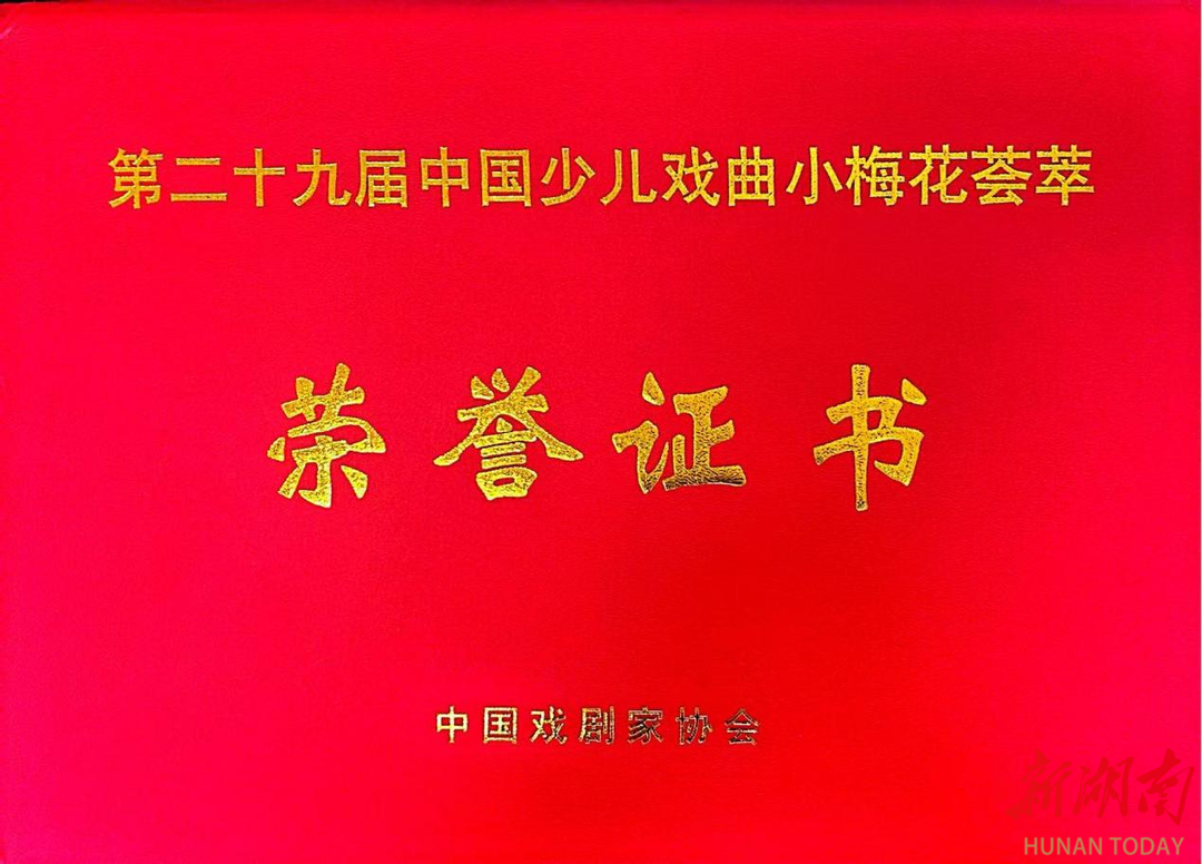 湖南日报·新湖南客户端11月7日讯(通讯员 梁毓敏 阙伟志)日前,涟源市实验学校刚刚收到了第29届“中国少儿戏曲小梅花荟萃”活动寄来的荣誉证书——由该校戏曲社团创排的湘剧《白兔记·打猎》,荣获了含金量十足的“小梅花优秀集体节目”奖。这份热乎的捷报,标志着涟源学子在全国少儿戏曲的最高舞台上实现了零的突破。